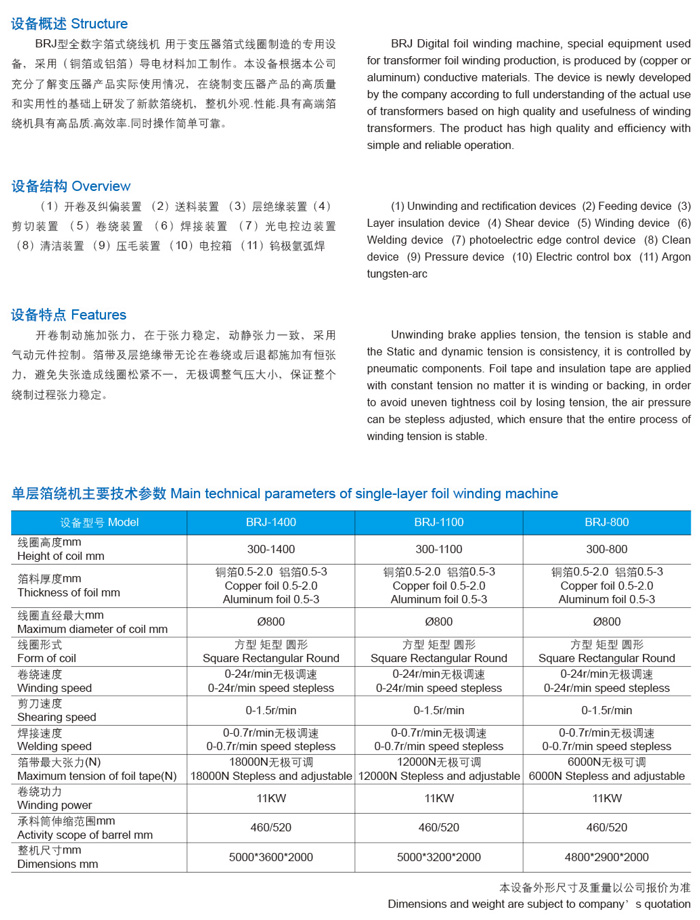 BRJ-1400/1100/800单层全数字箔绕机
