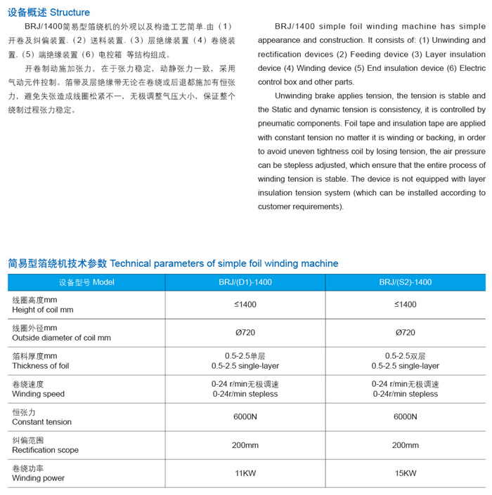 BRJ-1400单层/双层 简易型箔绕机