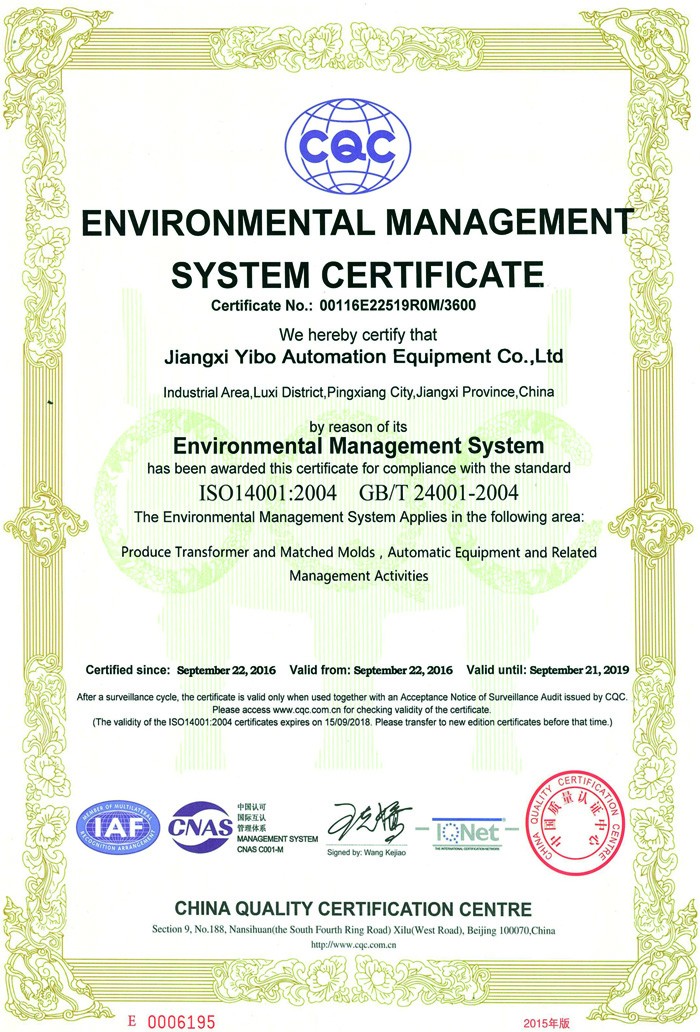 ENVIRONMENTAL MANAGEMENT SYSTEM CERTIFICATE